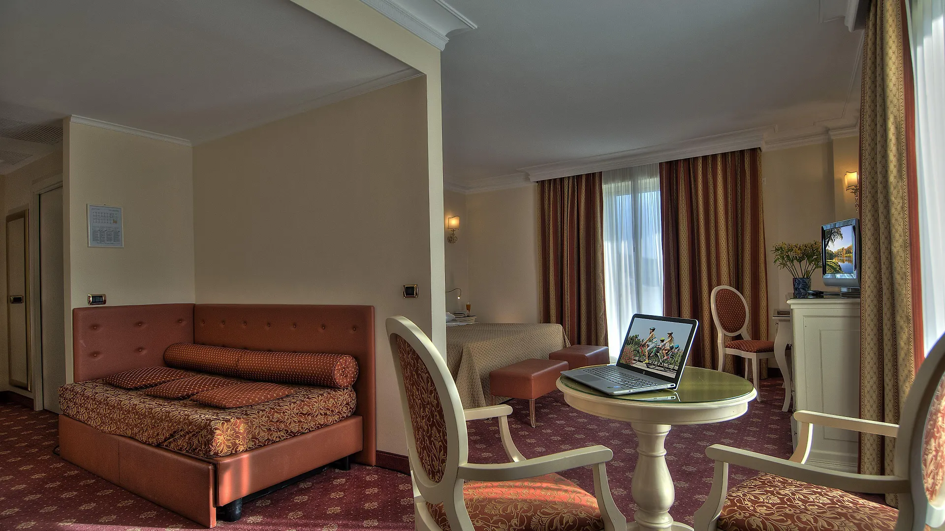 Das 4-Sterne-Hotel verfügt über 86 Zimmer mit einer Minibar und bietet eine Klimaanlage. Einige Zimmer sind im eleganten Stil eingerichtet. Die Badezimmer sind mit einem Bidet, einer getrennten Toilette und einer Dusche ausgestattet und bieten ebenfalls einen Haartrockner und Badelaken. Das Hotel Terme Leonardo überblickt den Innenhof.