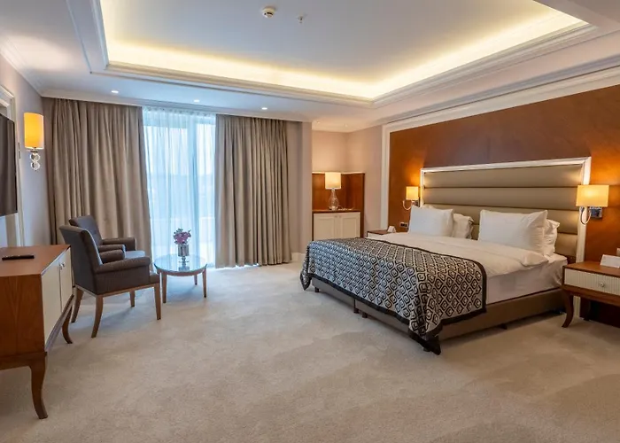 Das 5-Sterne-Hotel Ng Afyon Wellness & Convention Afyonkarahisar liegt etwa 6 Kilometer von der Großen Moschee entfernt und verfügt über 3 Außenpools und das Fitnesscenter.