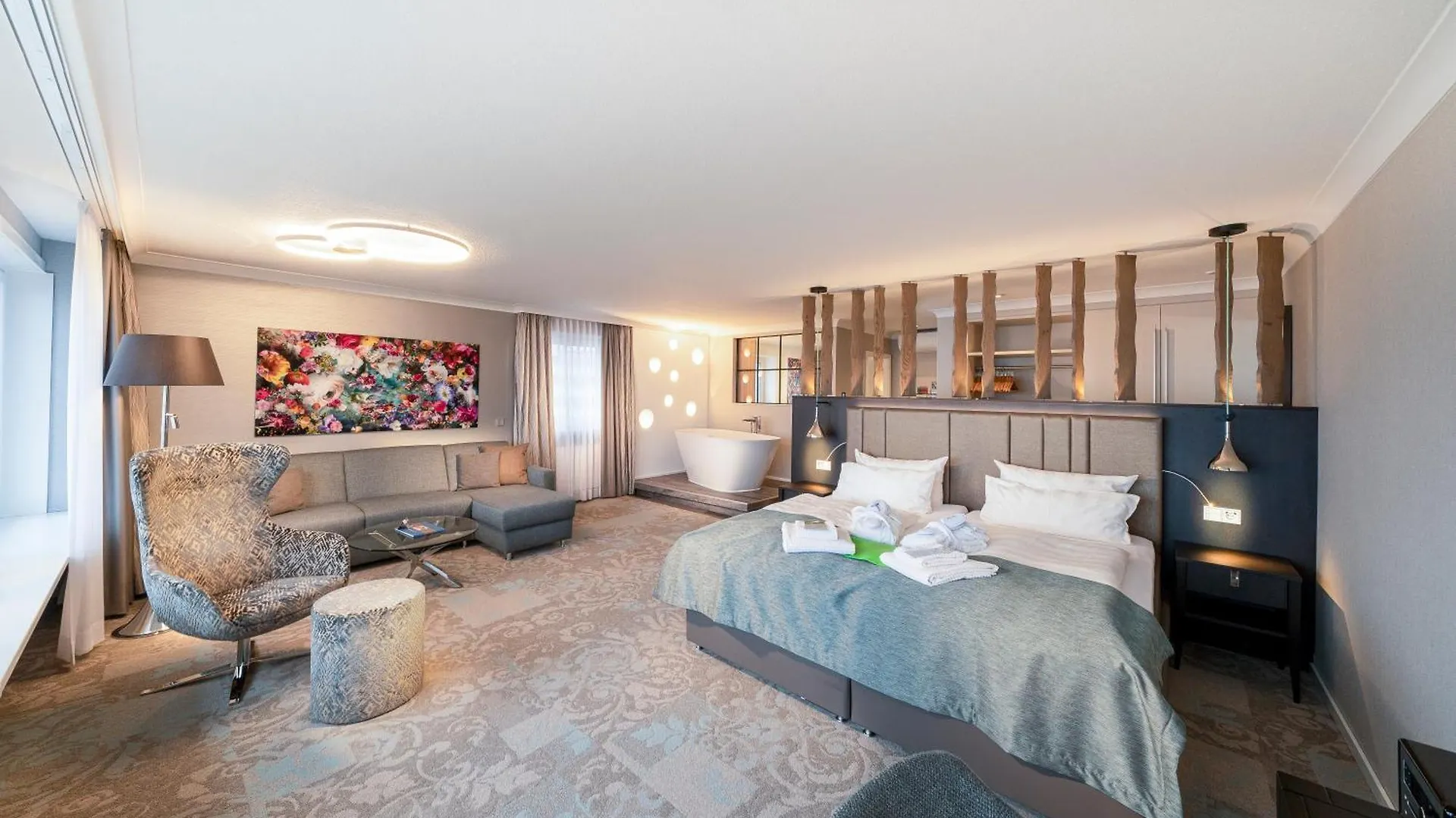 Alle schallisolierten Zimmer im Badhotel Sternhagen verfügen über einen Flachbildfernseher mit Satellitenkanälen und WLAN sowie eine Minibar für die Selbstversorgung. Sie sind im hellen Design eingerichtet. Sie verfügen über eine Wellness-Badewanne und eine begehbare Dusche sowie über viele zusätzliche Annehmlichkeiten, darunter ein Haartrockner und Badelaken. Von einigen Zimmern aus öffnet sich ein Blick aufs Meer.