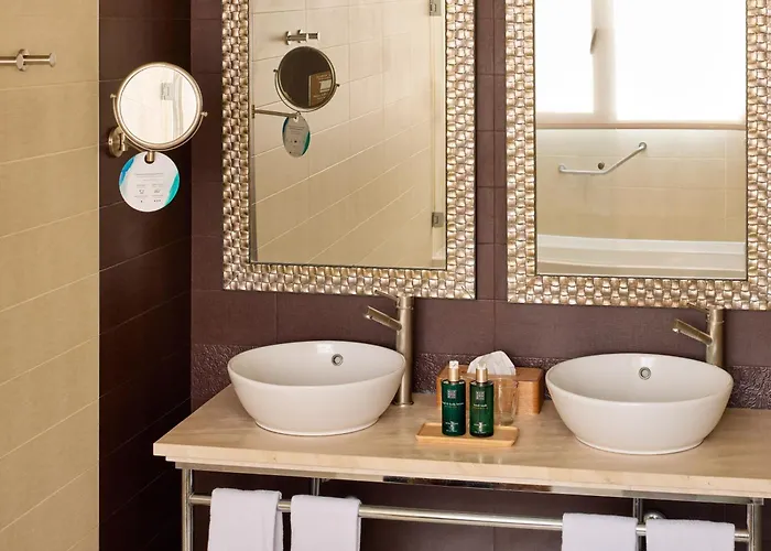 Die Zimmer verfügen über eine Minibar sowie einen Flachbildfernseher mit Satellitenkanälen und WLAN für Ihren Komfort. Ein Bügeleisen/Bügelbrett und eine Klimaanlage sorgen für den Komfort der Gäste. Die Badezimmer sind mit einem Bidet, einer behindertengerechten Dusche und einer getrennten Toilette ausgestattet und bieten auch Morgenmäntel und eine Duschhaube.