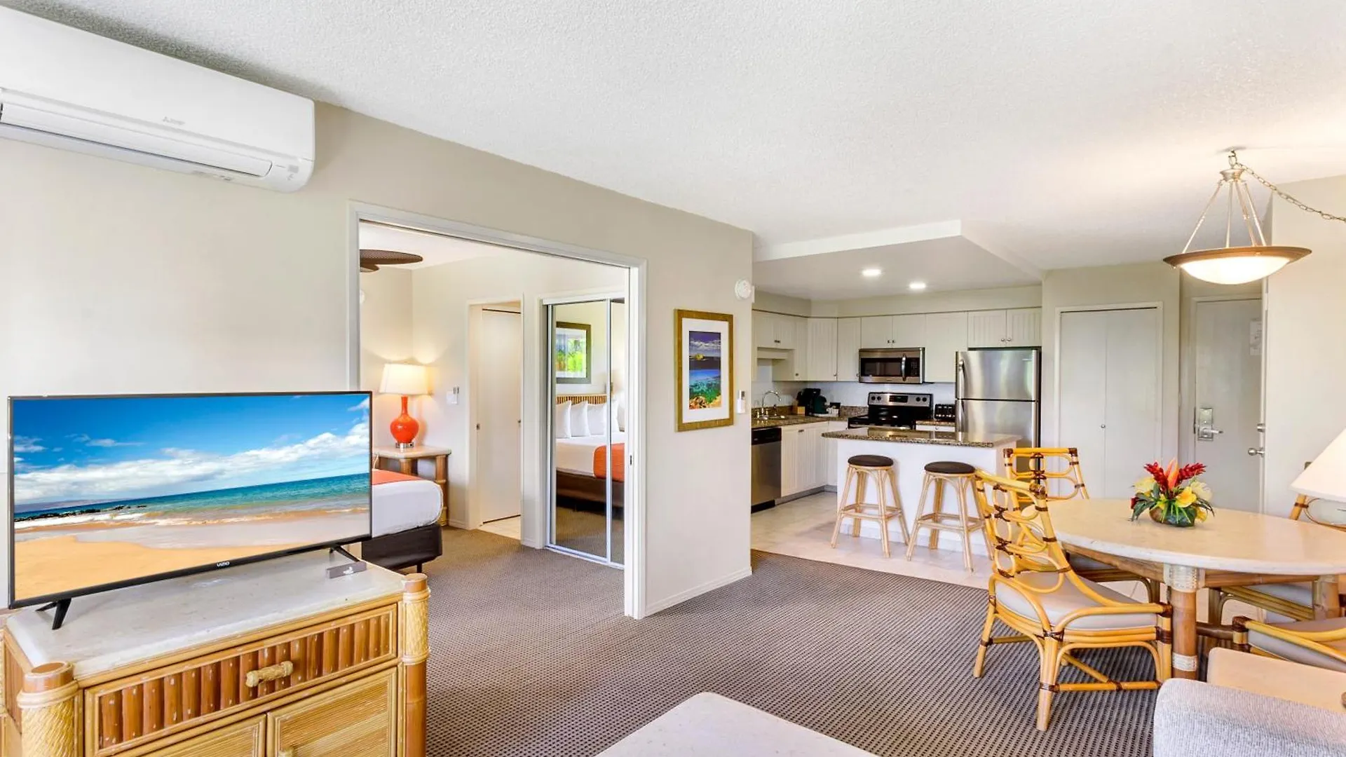 Das Makena Surf- Coraltree Residence Collection Wailea ist ein stilvolles Hotel, das Zimmer mit Ausstattung zur Kaffee- & Teezubereitung, Hochgeschwindigkeitsinternet und einer Klimaanlage sowie mit einer Kaffee-/Teemaschine, einem Kühlschrank und einem Kochfeld anbietet. Ein Bügeleisen/Bügelbrett und eine Klimaanlage sorgen für den Komfort der Gäste.