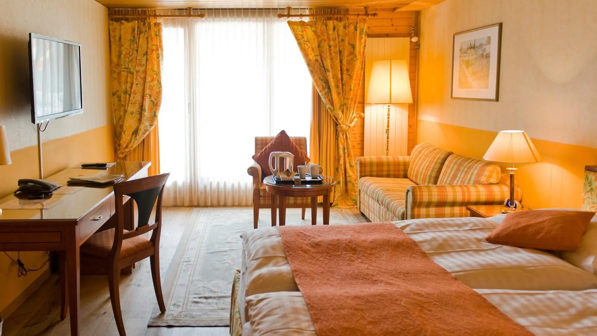 Neben einer Sitzecke sind die Zimmer im Hotel mit einem Flachbildfernseher mit Satellitenkanälen ausgestattet. Einige Zimmer im Beausite Park Hotel verfügen über ein offenes Badezimmer mit einer begehbaren Dusche. Von den Fenstern einiger Zimmer aus haben Sie eine schöne Aussicht auf die Berge.